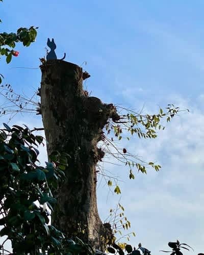 アトリエ屋根の黒猫ティアラと飛行機雲