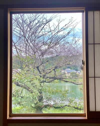 桜越しの瀬田川