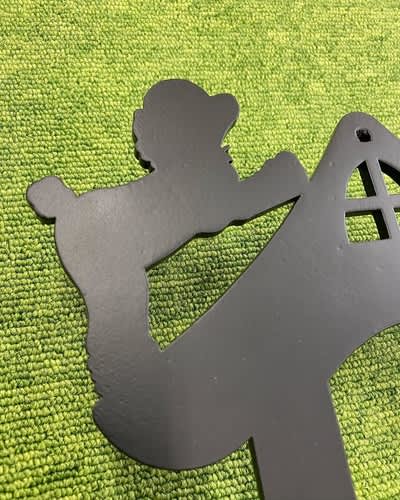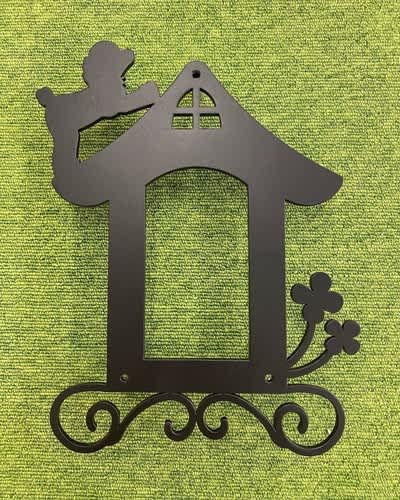 プードルと家の形に四つ葉のクローバーが付いてる。