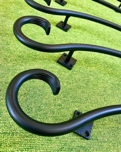 壁手すりの先端部にフィッシュテールが施されています。