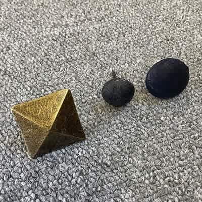 左は30mm角で銅色の鉄鋲(てつびょう)
