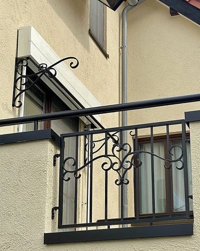 バルコニーフェンスにアカンサスラインの物干し掛けと