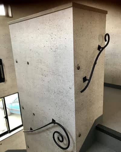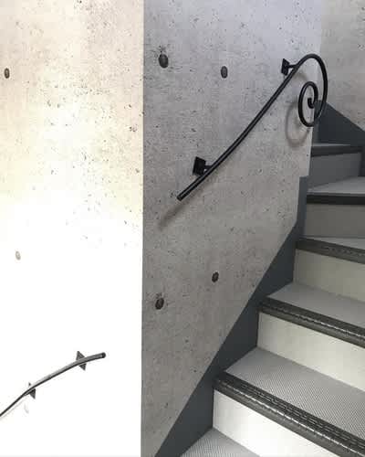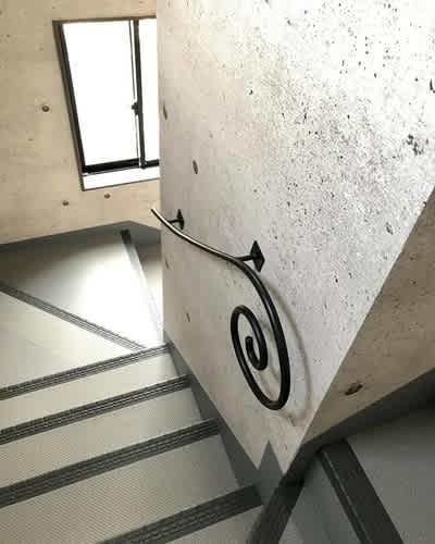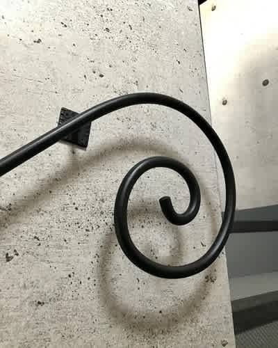 その階段にロートアイアン製の壁手すり