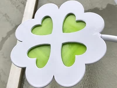 黄緑色の四葉のクローバーがポイントでね、防犯の役目も持ちながら