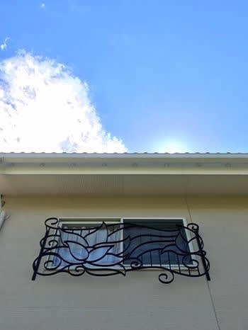 こちらは面格子に、湖面の蓮の花をデザインしました。
