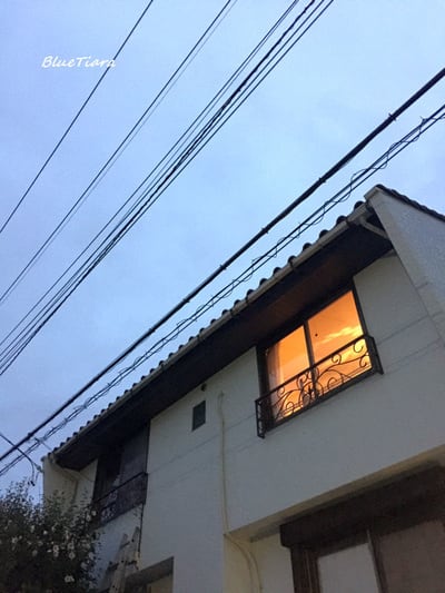 最後の画像は、電気を消したお部屋から見た、窓辺です
