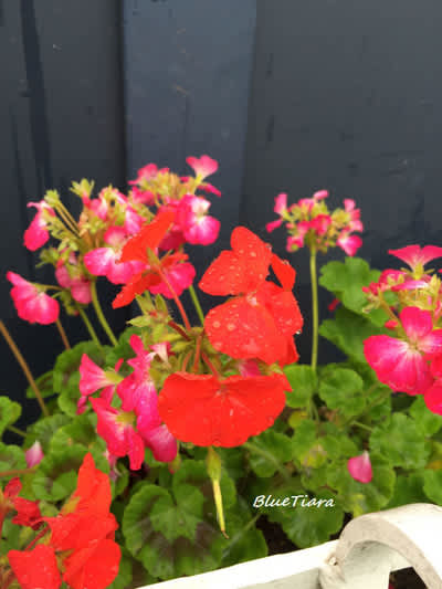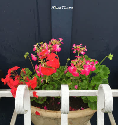 アトリエの外壁が濃紺なので、白色の花台にしています