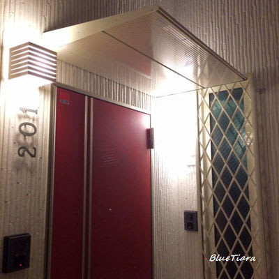 暗くなるとライトがあたるようにしてあるのですごくオシャレです。