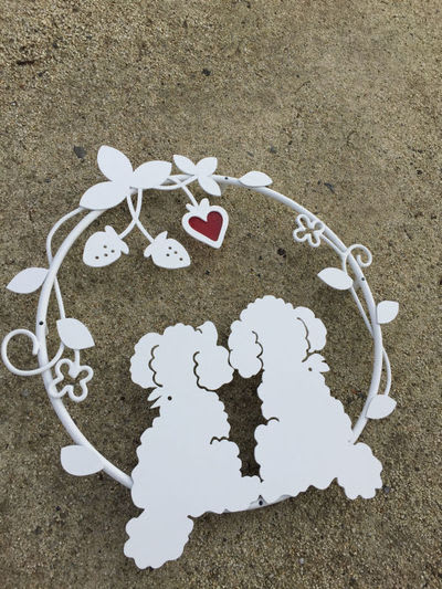 白い妻飾りの中で、赤いガラスの苺がひとつ