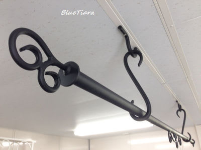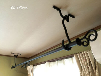 天井に付いているU字方の金物と竿が並行か直行かの違いです
