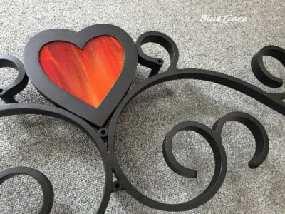 こちらは、赤いガラスを入れた、ハートの妻飾りですの画像です。