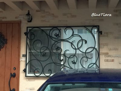 アカンサスの面格子に、隣地境界側に、2枚の面格子