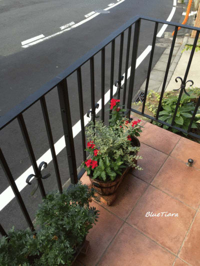 ロートアイアン製のフェンス、錆は、リボンのところくらいに出来ています