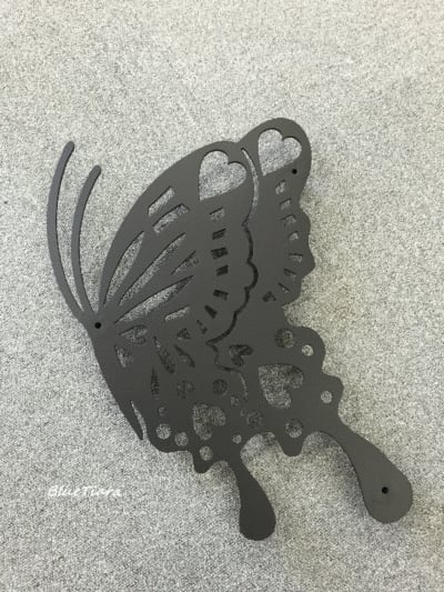 ハートの蝶が舞います 2015.07.20 B.壁飾り ハートの羽を持つ、蝶の壁飾りが出来上がりました 先日、お届け致しました(同じ蝶の表札もご依頼頂きました) 空を舞う、花畑を舞う、蝶 お住まいに蝶がいると、 いろいろな幸せを、運んでくれると思います ハートが入っていますしね(^-^) 素材はアルミ、焼付塗装仕上げです 次は、表札をご紹介しますね 新潟県新潟市中央区 Share B.壁飾り コメント: 0 オリジナル面格子前の記事 表札にも蝶を次の記事
