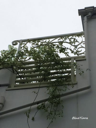 屋上のパーゴラは白色、ここにも緑が這っていますね