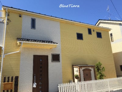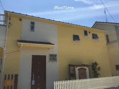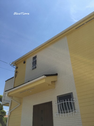 この黄色い外壁に白い製品、