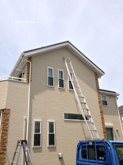 2階の窓にお取付で、窓が小さいので、外から梯子を使いました