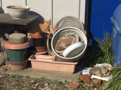 うちの猫達は、アトリエの屋根に今日も元気です(^-^)/