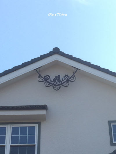 こちらは、破風飾りと玄関上の妻壁に小さな妻飾りを付けて頂きました。