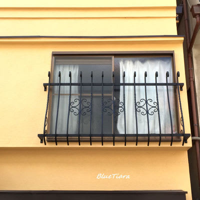 ブルーティアラのアルミ製の膨らみのある面格子で