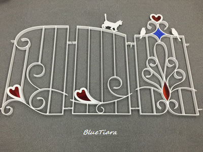 白い、アルミ製の手摺に、色ガラスはすごくいい感じでしょ