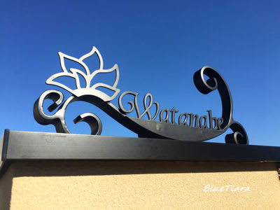 2階のバルコニーフェンスの蓮の花と重なって見えます