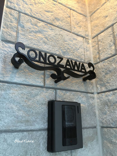 幅は280mmの表札、このデザインは室内の開口部飾りと共通です