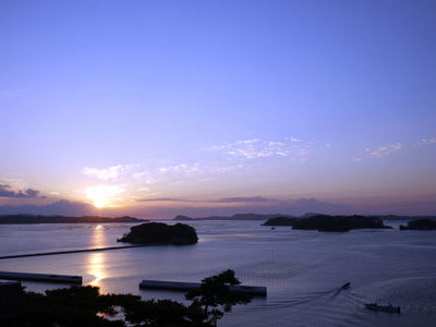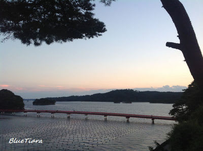 9月21日夕陽 宮城県宮城郡松島町 松越しの松島