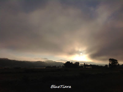 9月21日朝日 岩手県花巻市内 朝もやの中、静かで幻想的