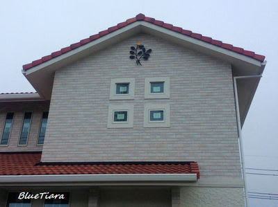 2階の妻壁は、4枚の正方形の窓がデザインを作っていますが