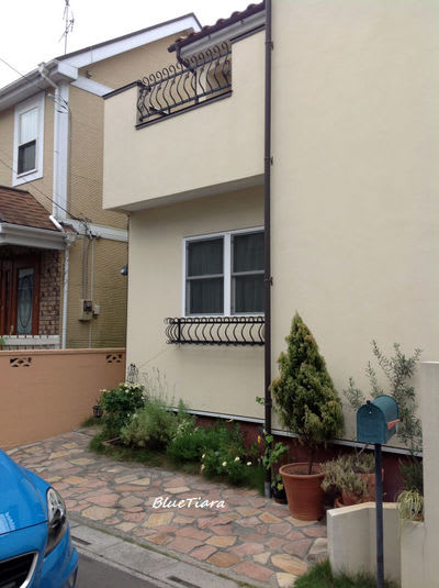 花台が2台と、バルコニー手摺に表札
