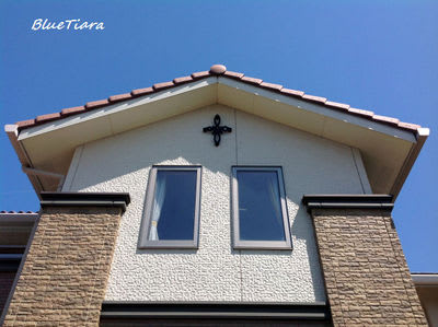 2階で窓が2枚並ぶ、妻壁